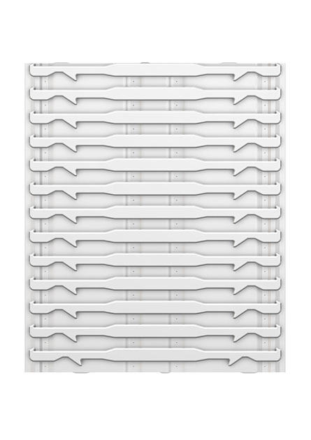 Die Darstellung von Frontansichten ohne Perspektive dient dazu dem Betrachter einen schnellen Überblick zu verschaffen. Auf einem Blick können so Unterschiede ausgemacht werden. Hier diente es dazu die mögliche Einteilung der Schübe zu verdeutlichen, bzw. die verschiedenen Typen von Modul-Trägerwänden darzustellen.