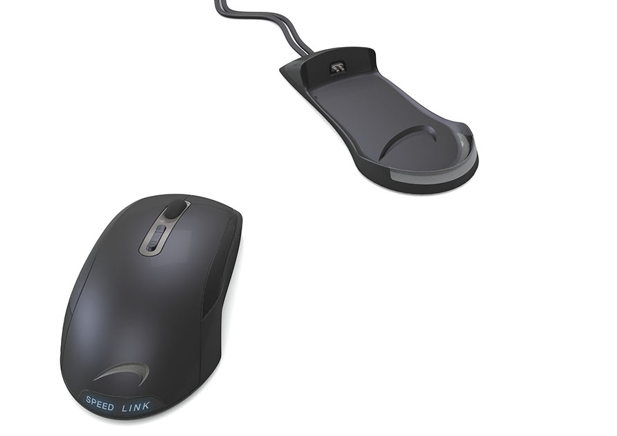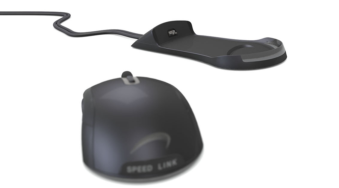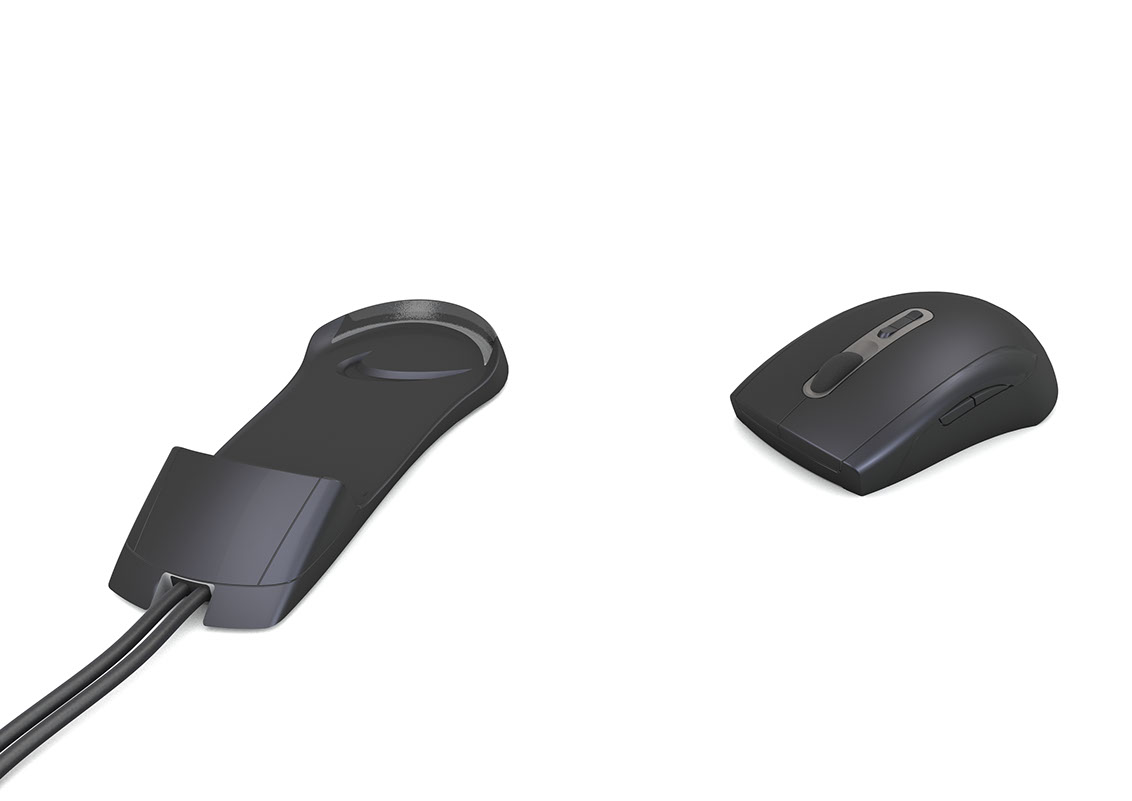 Für die bestehende kabelgebundene Maus haben wir für die Firma Jöllenbeck einen Entwurf für die Ladeschale der kabellosen Maus erstellt.