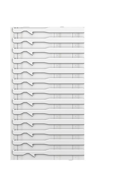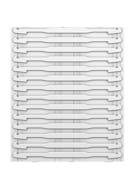 Die Darstellung von Frontansichten ohne Perspektive dient dazu dem Betrachter einen schnellen Überblick zu verschaffen. Auf einem Blick können so Unterschiede ausgemacht werden. Hier diente es dazu die mögliche Einteilung der Schübe zu verdeutlichen, bzw. die verschiedenen Typen von Modul-Trägerwänden darzustellen.